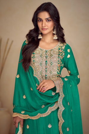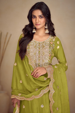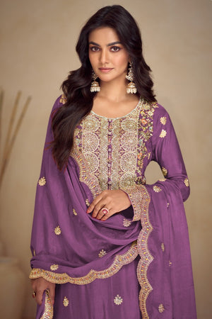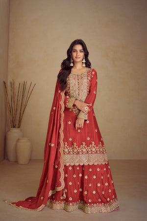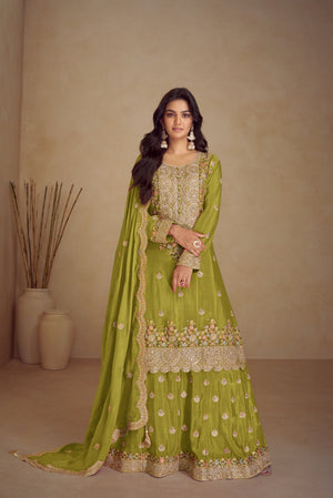 Indulge in effortless elegance with Silken Aura, a beautifully coordinated ensemble crafted from premium Chinon silk and finished with a delicate net dupatta. Lightweight, luxurious, and ideal for both festive occasions and refined celebrations.