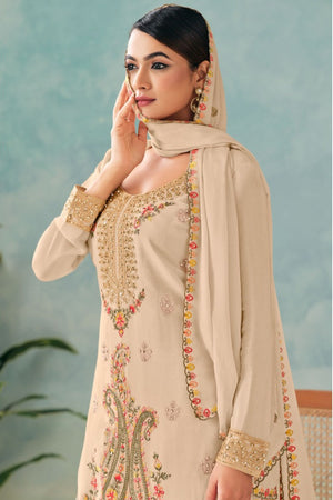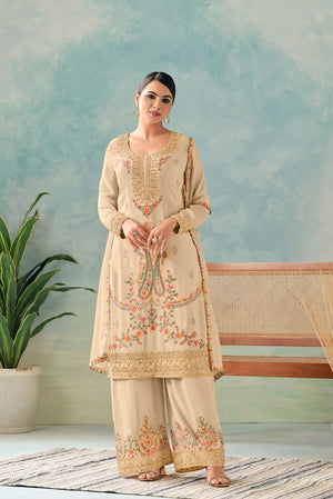 Subtle shimmer meets timeless grace in this all-Chinon ensemble, beautifully enhanced with intricate Jari and Sequin embroidery work.