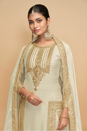Dupatta: The Real Chinon dupatta completes the set with its soft fall and complementing finish, adding a hint of refinement to the overall look.