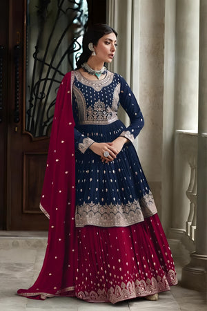 Make a graceful style statement with this beautifully designed semi-stitched suit set, crafted from rich Bluming Georgette and detailed embroidery — ideal for festive occasions, parties, and elegant traditional wear.