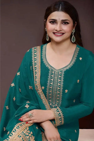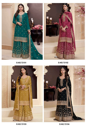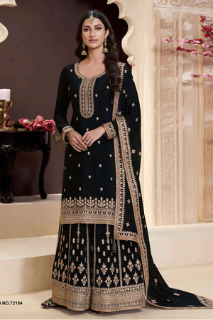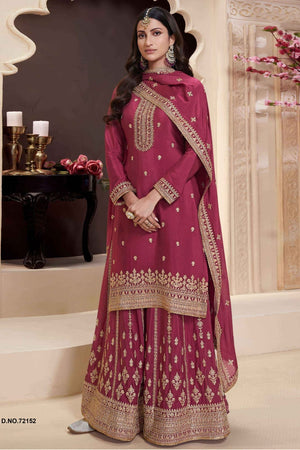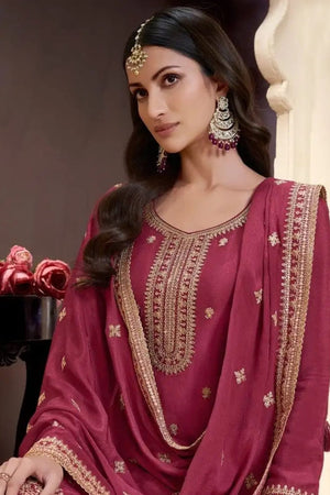 Step into graceful luxury with this stunning Heavy Chinon Suit Set, adorned with multicolor embroidery that radiates festive charm and elegance.
