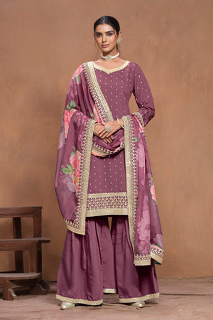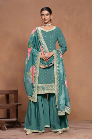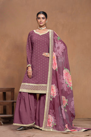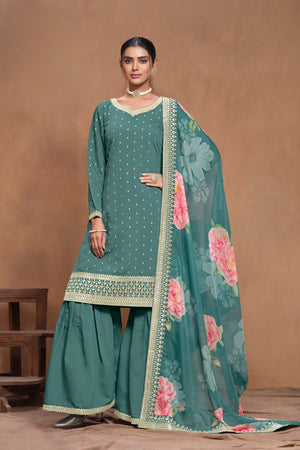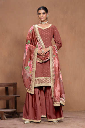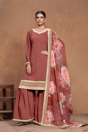 Redefine elegance with this Roman Silk suit set, beautifully paired with a printed Organza dupatta — perfect for festive and formal occasions.