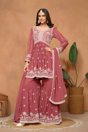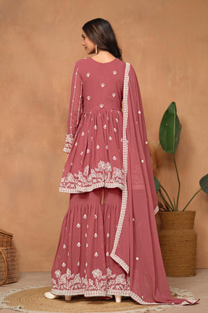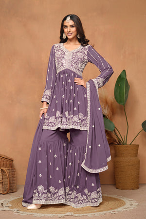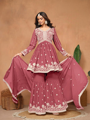 Flow with festive charm in this elegant Faux Georgette Sharara set — lightweight, graceful, and crafted for celebration-ready moments.