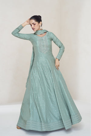 Coordinated Heavy Vichitra sleeves carry matching Sequin and Embroidery detailing, completing the upper silhouette with polished charm.