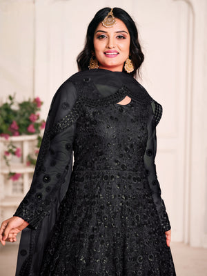 Ā A dreamy, full-stitched gown set crafted from delicate net fabric and paired with a soft dupatta ā designed for evening elegance and festive charm.