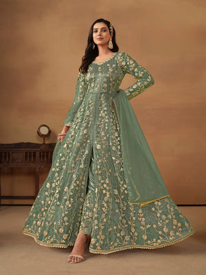 Paired with a matching Net dupatta, adding a soft, flowy charm to the complete look.