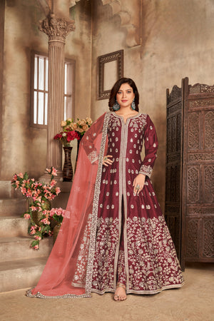 A regal full-stitched gown set crafted from rich 9000 Velvet, perfect for grand celebrations and timeless elegance.