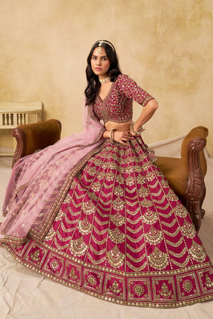 This stunning lehenga set is crafted from luxurious art silk fabric, offering a rich texture and graceful drape. The blouse and lehenga are beautifully detailed with elegant embroidery, enhancing its festive appeal. Paired with a lightweight net dupatta, this ensemble exudes sophistication and timeless charm, perfect for traditional celebrations and special occasions.