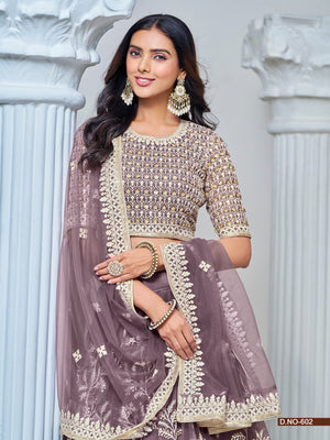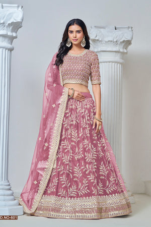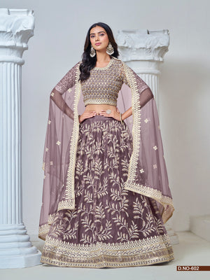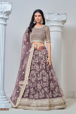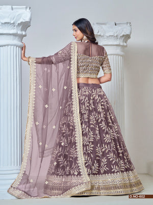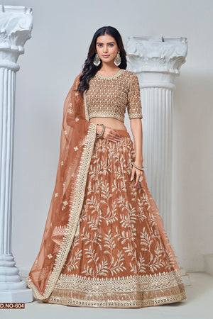 Crafted entirely from fine Net fabric, the lehenga and choli offer a flowy, sheer silhouette that drapes beautifully and feels effortlessly elegant.