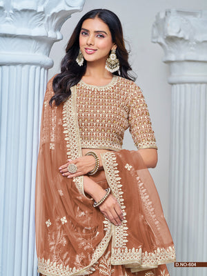 Matching Net blouse designed to complement the lehenga with a delicate and graceful look.