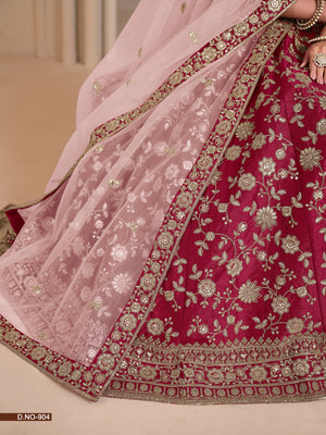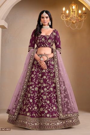 Elegant and timeless—this Art Silk lehenga set with intricate embroidery and a soft net dupatta is designed to make you glow at every celebration.