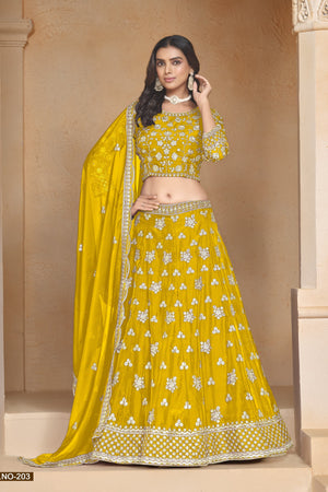 Elegant and timeless—this Art Silk lehenga set with intricate embroidery and a soft net dupatta is designed to make you glow at every celebration.