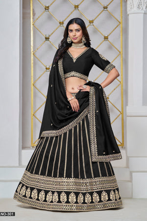 Elegant and timeless—this Art Silk lehenga set with intricate embroidery and a soft net dupatta is designed to make you glow at every celebration.