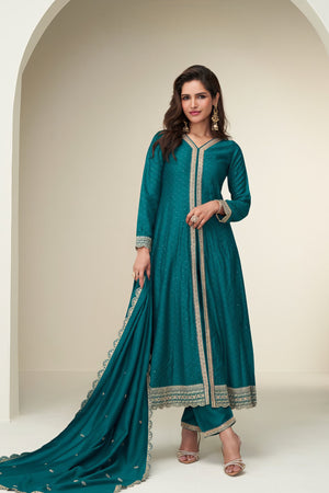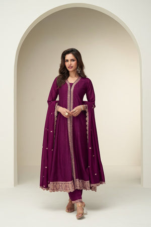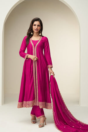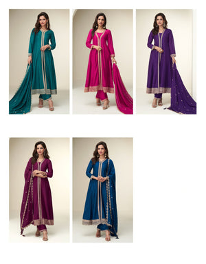 This elegant set is crafted from premium silk, featuring intricate embroidery on both the front and back of the top. The matching bottom complements the luxurious feel, while the premium silk dupatta adds a graceful and refined finish to the ensemble, perfect for festive or special occasions.