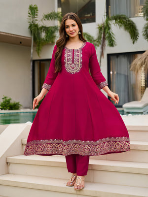 Pure Vichitra Silk with Sequence Coding Embroidery Work |