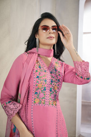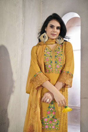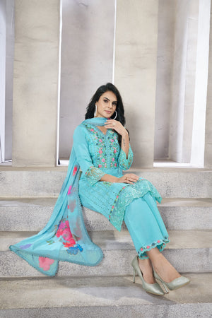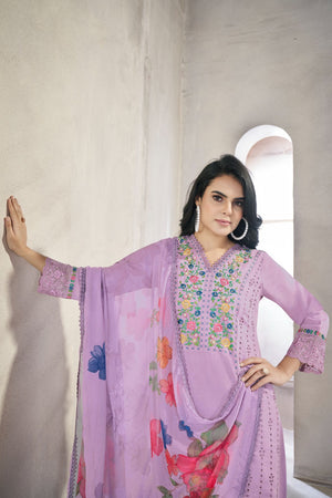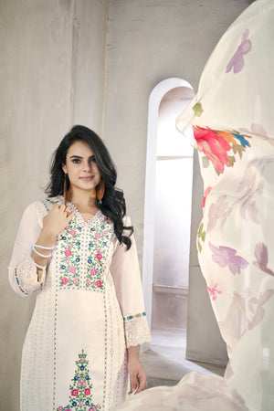A sophisticated blend of elegance and artistry, this suit set features delicate handwork and luxurious fabrics crafted for graceful occasions.