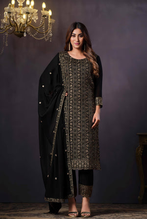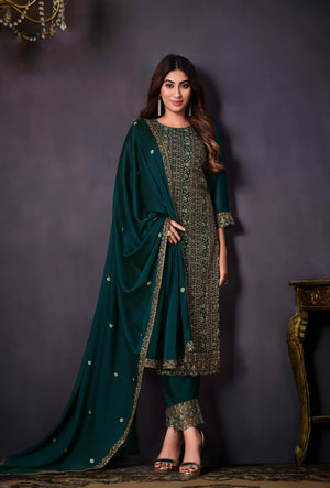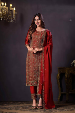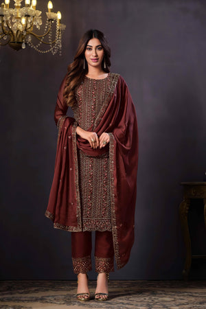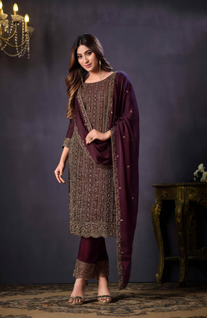 Radiate grace in this richly crafted Heavy Rangoli suit set, adorned with intricate coding sequence embroidery — a timeless ensemble perfect for festive gatherings, weddings, and elegant evening affairs.