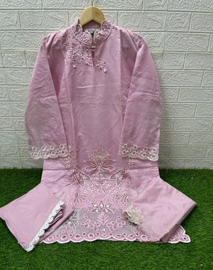 This elegant designer tunic features heavy embroidery and intricate handwork on the top and sleeves, delivering a glamorous and festive appeal. It is paired with a stylish Viscose Gadhwal pant and an embroidered organza dupatta, making it an ideal ensemble for special occasions.
