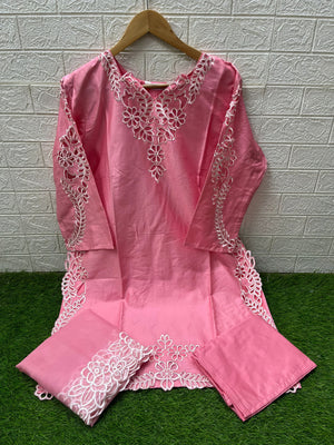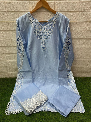 This designer tunic set features a classic Zam Satin kurti adorned with intricate embroidery and detailed cutwork. The look is elevated with glamorous heavy embroidered sleeves. Paired with matching Zam Satin pants and a beautifully embroidered organza dupatta, this ensemble is perfect for making a refined festive statement.