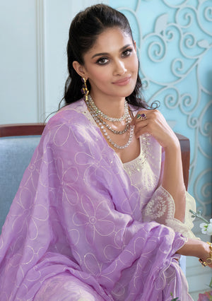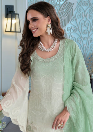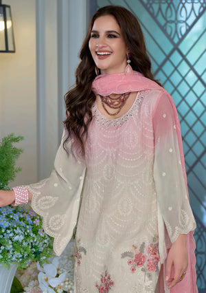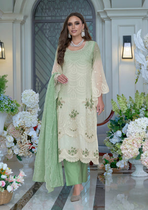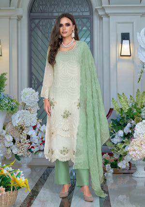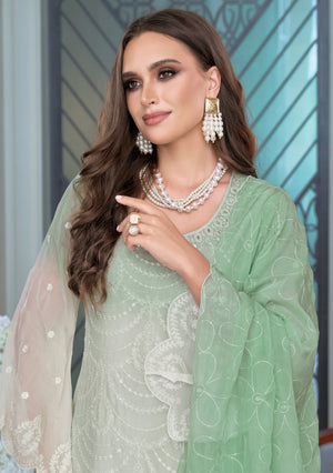 Make a timeless style statement with this elegant three-piece set, thoughtfully designed to elevate your festive look. The top is crafted from soft organza and adorned with intricate fancy embroidery, delicate moti work, and finished with exquisite GPO lace—bringing a graceful, handcrafted touch to your outfit. The ensemble is paired with a premium heavy silk bottom that adds a luxurious feel and flawless drape. Completing the set is an embroidered organza dupatta, creating the perfect blend of tradition, texture, and sophistication. Ideal for festive occasions, traditional functions, and special celebrations.
