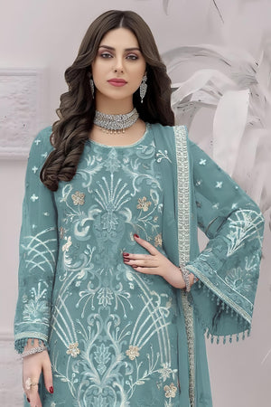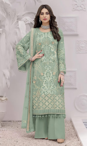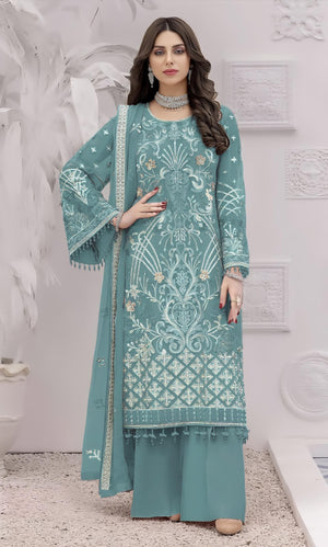Faux Georgette with heavy embroidery work, offering a rich texture and flattering fall.