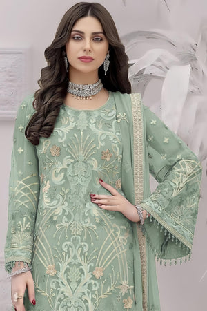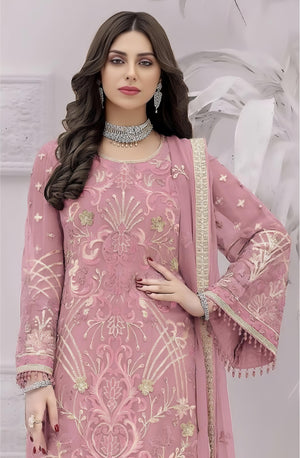 Drape yourself in timeless beauty with Nazraa Elan, a stunning ensemble crafted from soft Faux Georgette and highlighted with heavy embroidery and elegant chiffon. Designed to turn heads with refined flair and comfort.