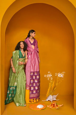 - Experience the elegance of our Handloom Weaving Silk Saree, crafted from authentic handwoven silk known for its natural texture and breathable comfort.