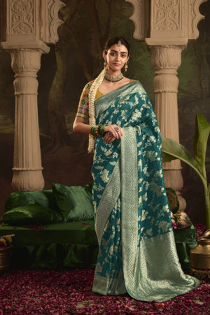 Step into grace and grandeur with this exquisite Kora Banarasi Art Silk saree. The fine weave captures the charm of traditional Banarasi craftsmanship, while the rich texture and elegant fall make it a perfect pick for regal occasions. Paired with a fully stitched matching blouse, this set reflects timeless Indian heritage.