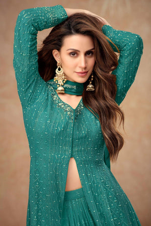 Real Georgette with front and back embroidery work paired with delicate hand embellishments