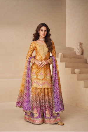 Dupatta: The Premium Chinon Dupatta is lightweight and elegant, perfectly complementing the embroidery work on the top and sharara.