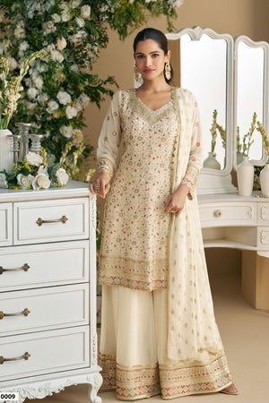 A richly crafted ensemble in premium Real Georgette, beautifully adorned with hand Sirozski and embroidery work, designed to make a graceful statement at every celebration.