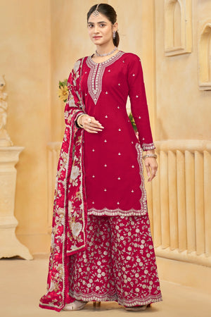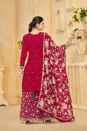 Exude royal elegance in this luxurious Roman Silk suit set, paired with a graceful Tabby Silk dupatta — a refined ensemble for grand occasions.