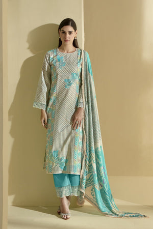 1 Digital Printed Cotton Lawn Top with Embroidery & Organza Sleeve Border (stitched)