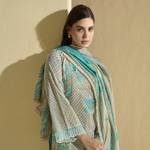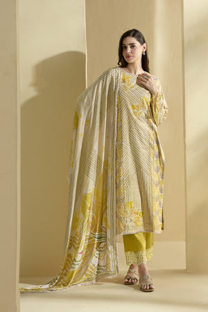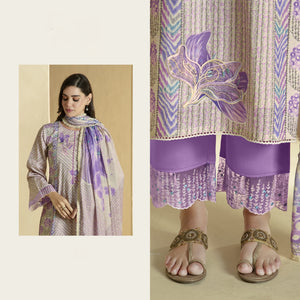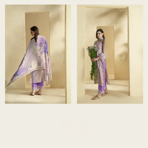 Where comfort meets craftsmanship — this Cotton Lawn suit set is elevated with delicate scalloped detailing, rich digital prints, and a breezy Bamber Mulmul dupatta.