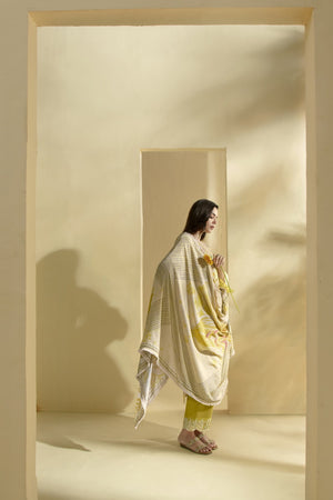 Dupatta: Completing the set is a Pure Bamber Mulmul dupatta adorned with matching digital prints and delicately crafted tassels — lightweight, airy, and full of charm.