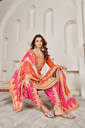 • Dupatta: Premium chinon featuring fine digital print and a four-side handwork border for a luxurious finish.