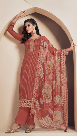 Dupatta: The look is finished with a Digital Printed Organza dupatta — light, flowy, and artistically vibrant for a modern edge.
