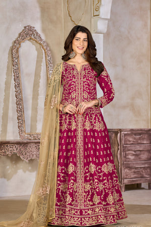 Art Silk Top & Bottom Set with Santoon Inner Gown LXGW0064