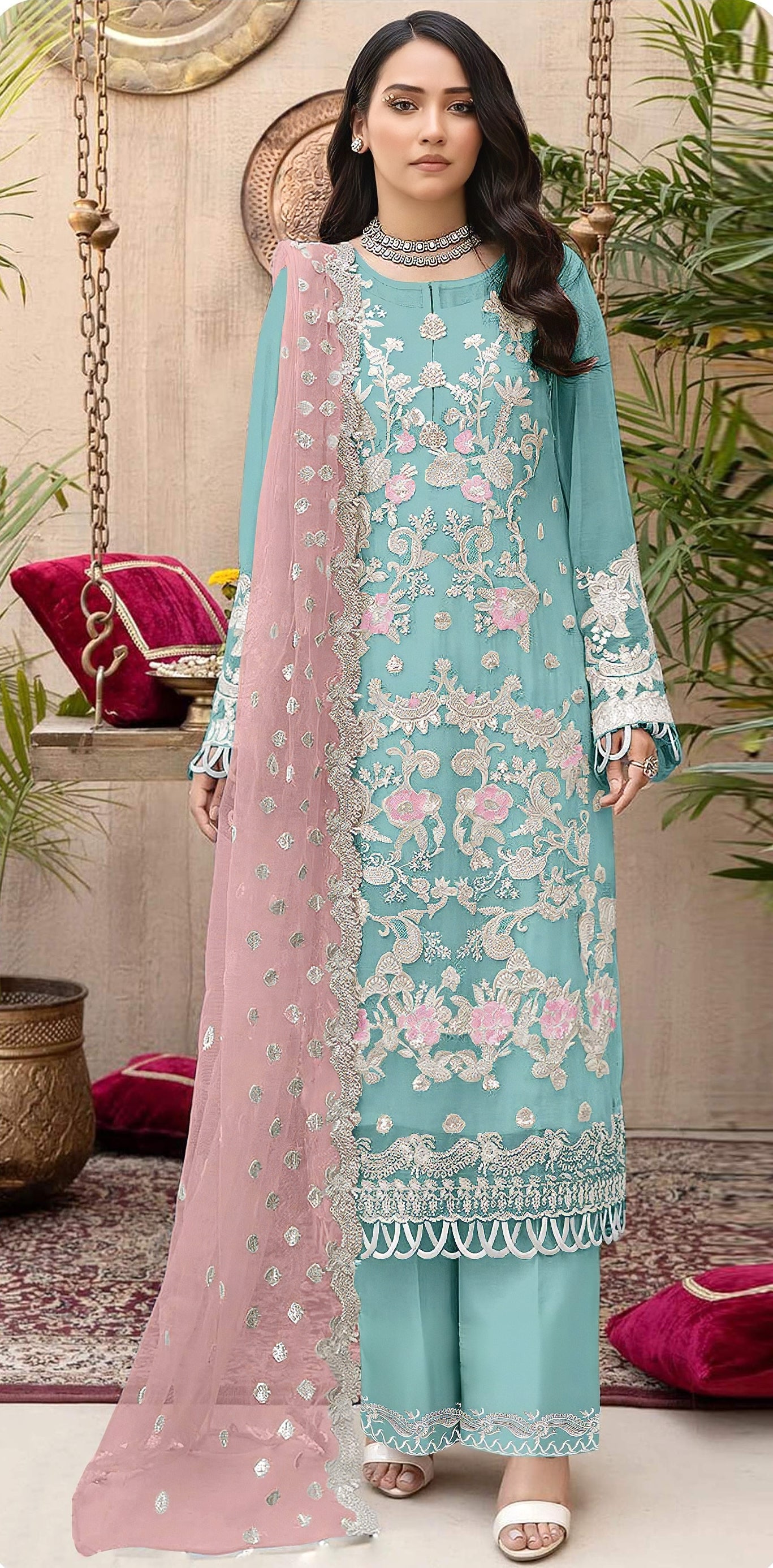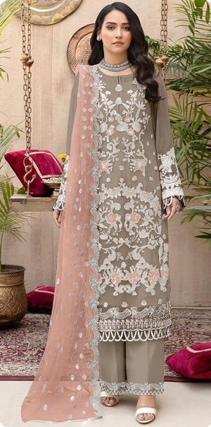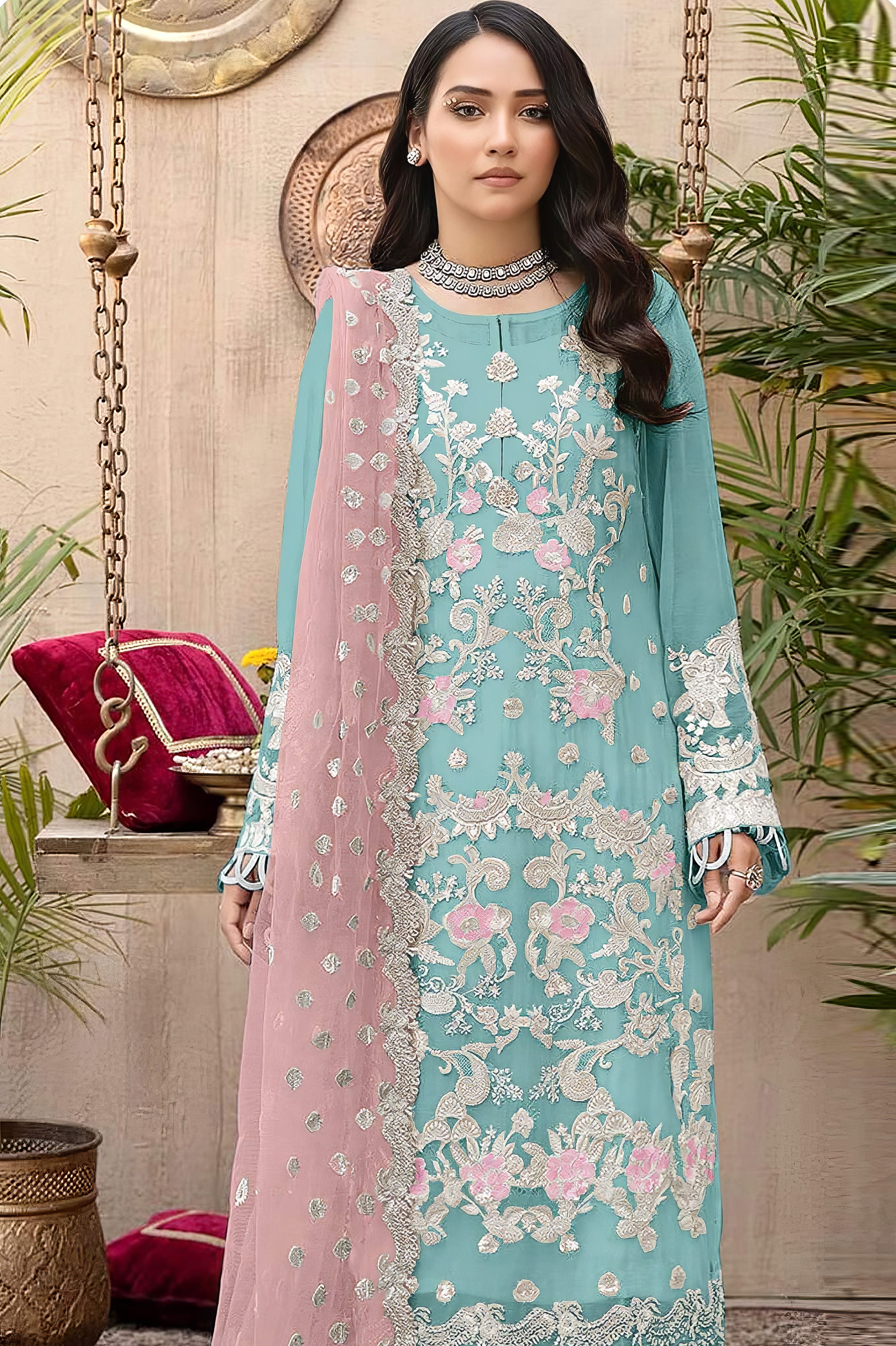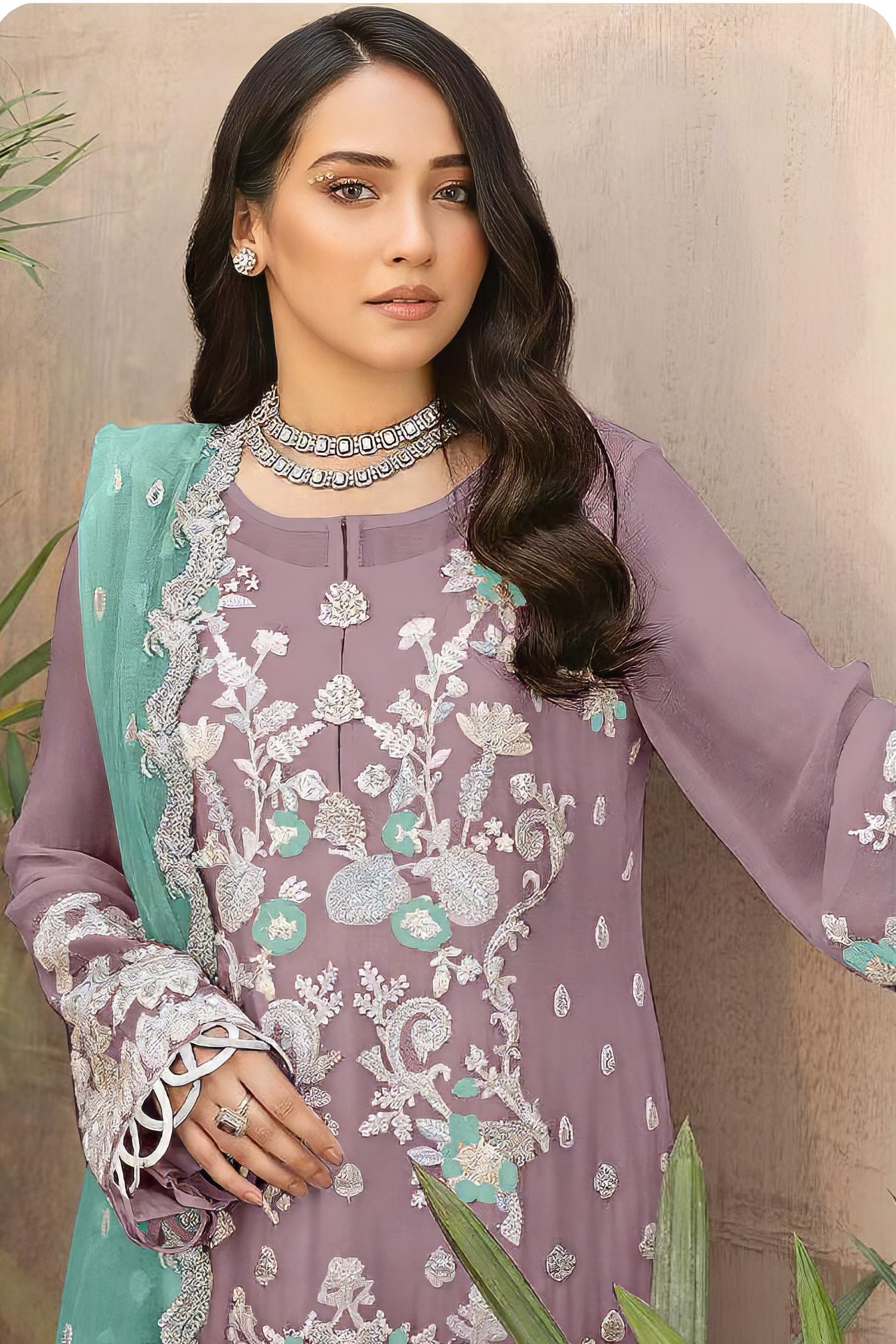 This elegant ensemble features a beautifully embroidered premium georgette top enhanced with intricate handwork and latkan details. The matching georgette sleeves come adorned with delicate pearl lace, adding a refined touch. Paired with a comfortable dull santoon bottom and inner, the outfit is completed with a premium georgette dupatta showcasing fine embroidery lace work for a graceful finish.