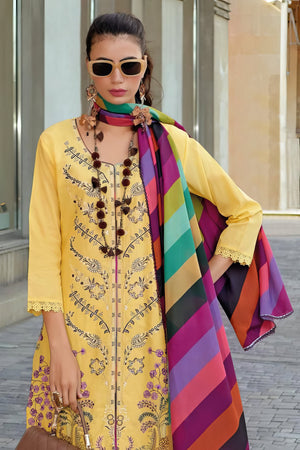 This elegant suit set is crafted from breathable cotton fabric, making it both comfortable and stylish. The top features delicate embroidery work, adding a touch of charm and sophistication. It is paired with a plain cotton pant for ease and versatility. Completing the look is a soft cotton dupatta, digitally printed with vibrant patterns, lending a modern and refreshing appeal to the ensemble.
