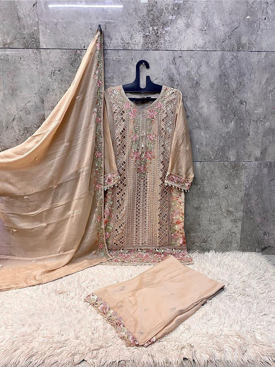 Elegant Heavy Chiffon Suit Set with Plazo