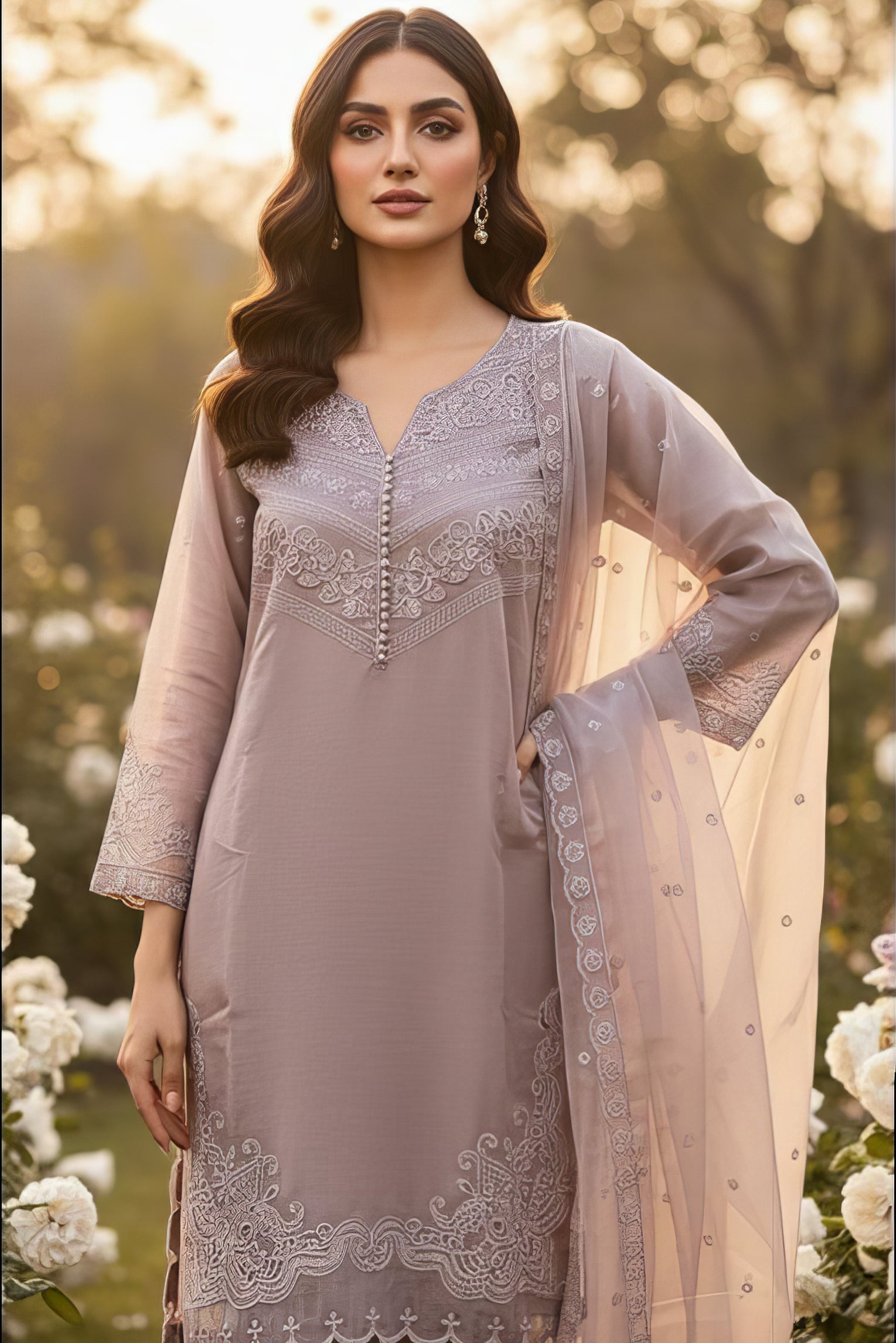 Elegant heavy organza dupatta adds a touch of sophistication