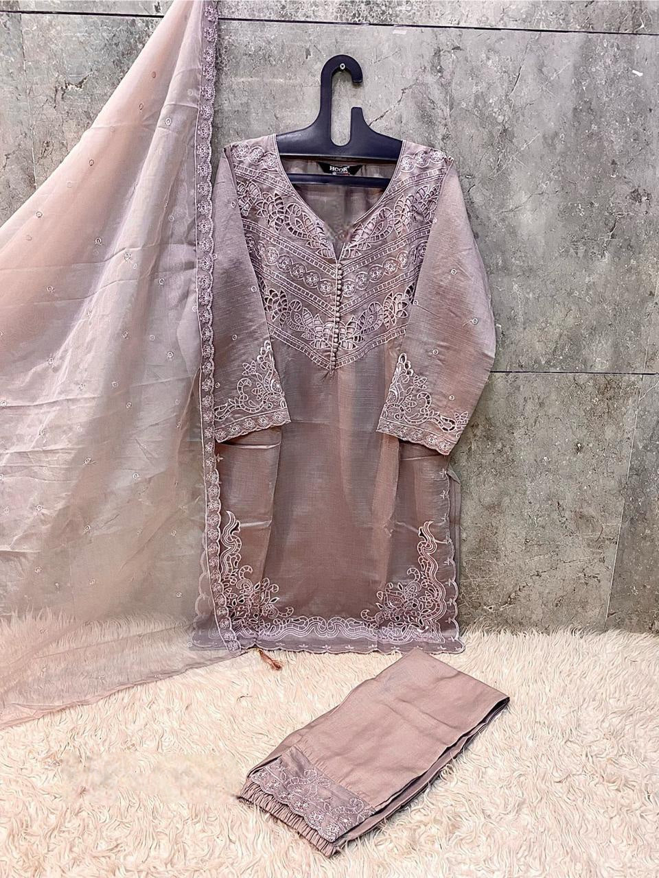 Graceful Cristal Viscose Suit Set with Organza Dupatta