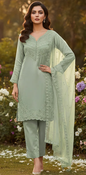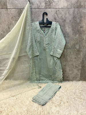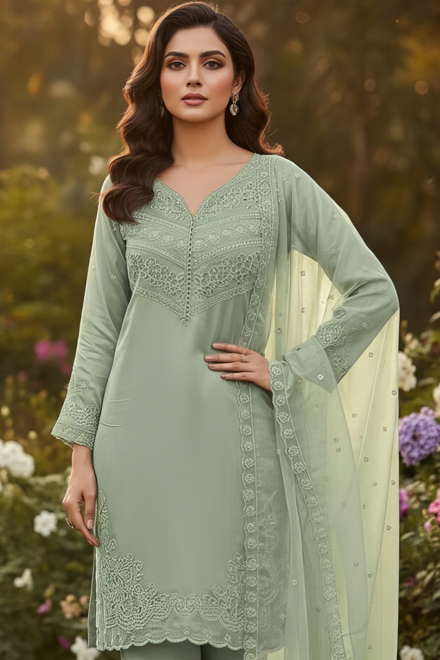 Graceful Cristal Viscose Suit Set with Organza Dupatta