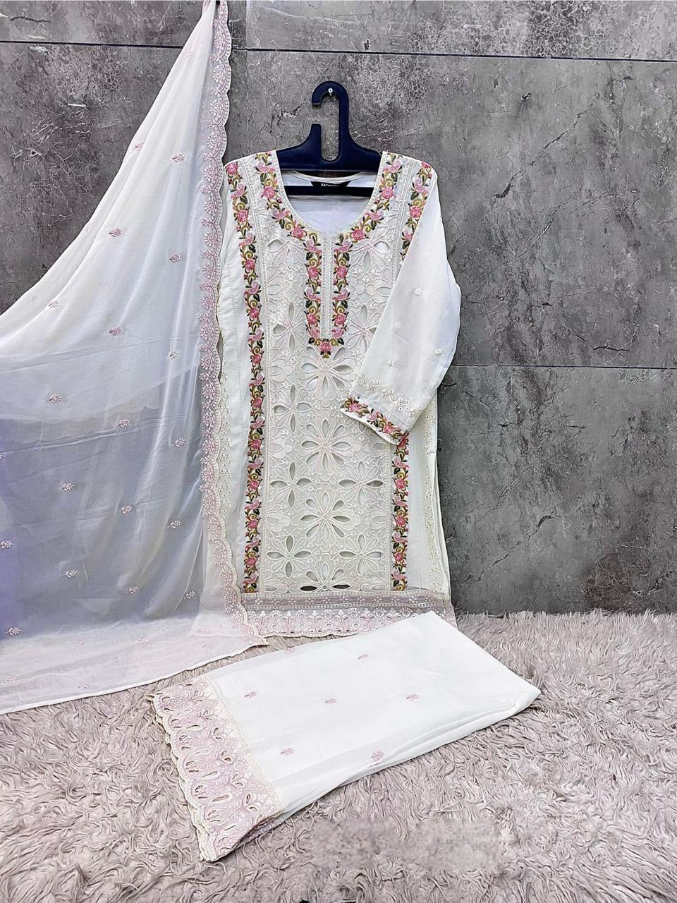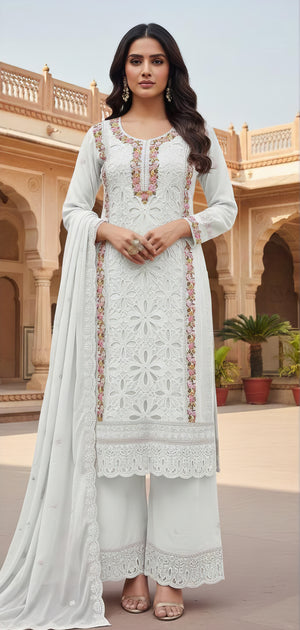Home Heavy Georgette Zarkan Work Suit Set with Plazo Pakistani Suit EAPK0139