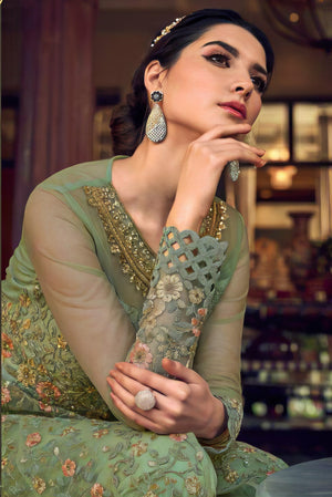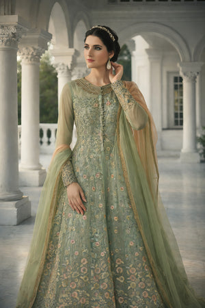Sleeves: Sheer net sleeves adorned with matching embroidery and stone work for a refined, graceful touch.