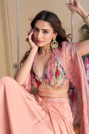 This fully stitched premium lehenga set is crafted in rich real chinon silk, designed to exude regal charm and contemporary elegance. The blouse features intricate hand embellishments for a luxurious finish, while the fully flared lehenga offers a flattering silhouette. A heavily embroidered shrug in matching chinon silk adds a sophisticated overlay, completing the ensemble with statement-worthy grace. Perfect for weddings, receptions, and high-end festive occasions.
