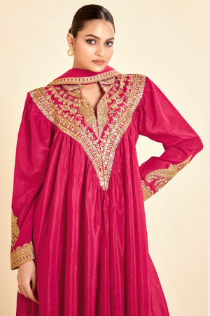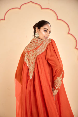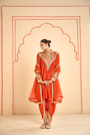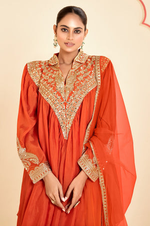 This coordinated set features a digitally printed Real Chinon top and plazoo that radiate modern elegance. The lightweight Real Chinon dupatta adds a graceful flow to the ensemble, making it perfect for festive outings and intimate gatherings.