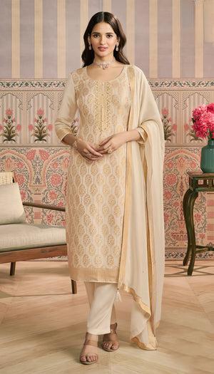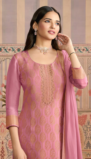 Meena Touch Vis Simmer Jacquard with exquisite hand work |