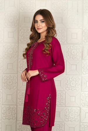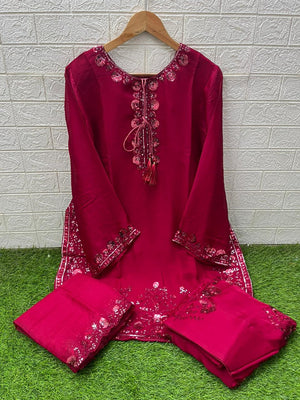 Elegant Satin Chiffon Suit Set with Denting Organza Dupatta